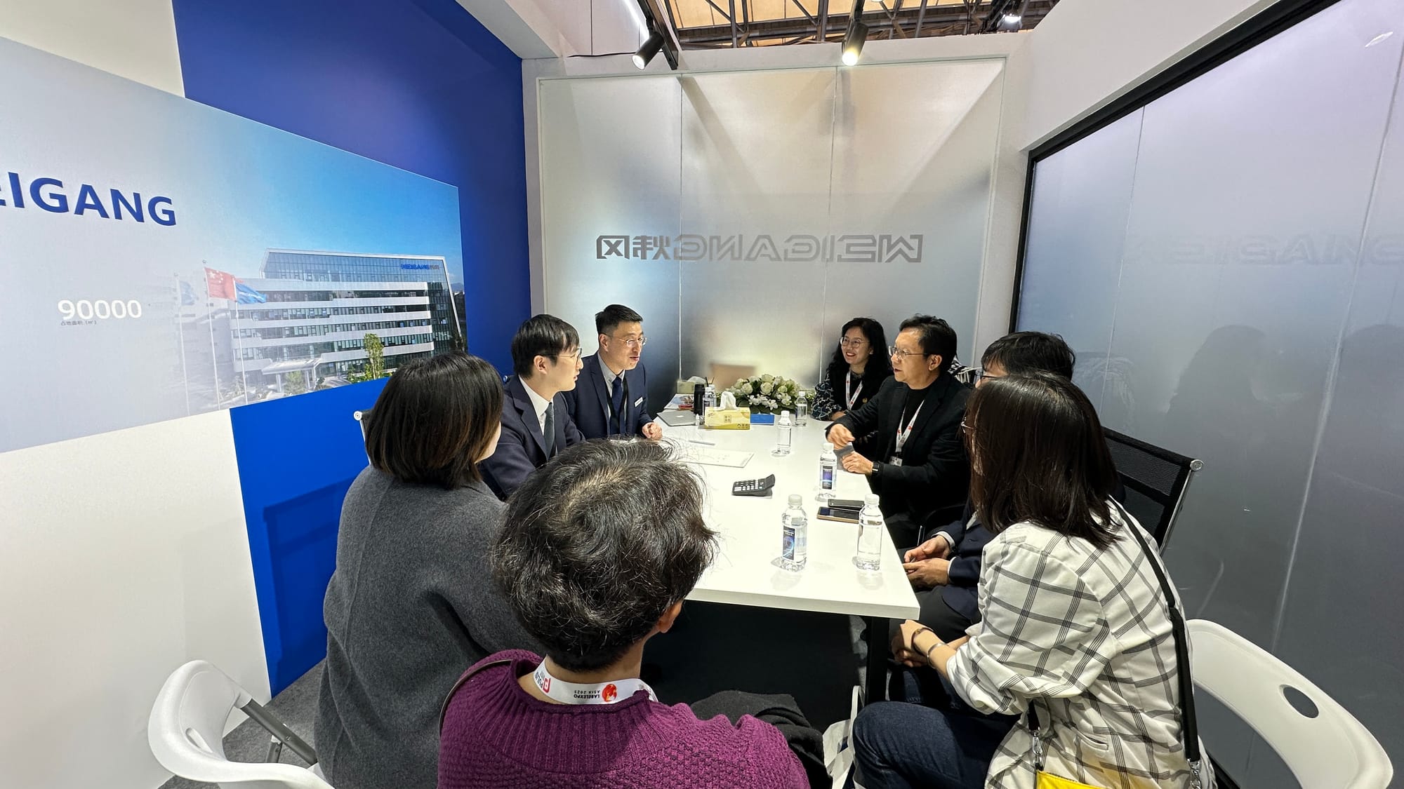在E1館C40展位,煒岡科技的展示區自開幕首日起便人氣匯聚,參觀與洽談氛圍熱烈。中國印刷及設備器材工業協會副理事長楊斌、副秘書長王鳳娜、標簽分會秘書長賈燕等一行人也親臨展位參觀指導,并與煒岡團隊舉行了交流座談,就行業技術趨勢與企業創新方向進行了深入溝通。
