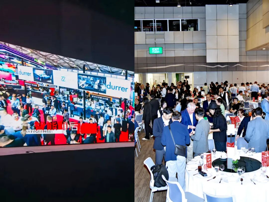 在9月19日舉辦的亞洲印刷大獎頒獎晚宴上,全印展以極具視覺沖擊力的“中國紅”宣傳冊裝點晚宴餐桌,主屏幕上播放的上屆回顧視頻,直觀生動呈現(xiàn)了全印展的盛大場景、豐富活動與人潮涌動的熱鬧景象。