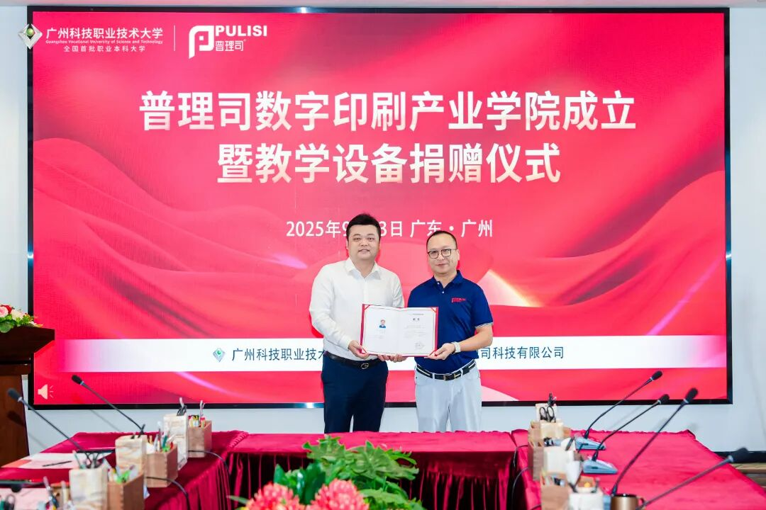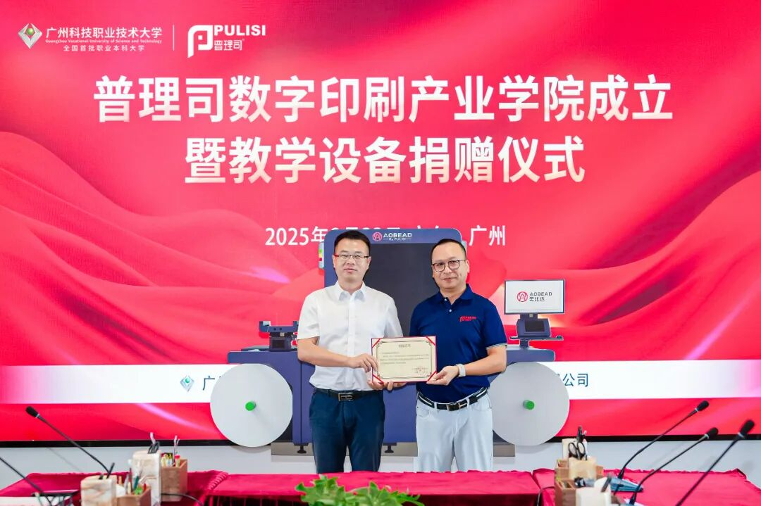 至此,普理司數(shù)字印刷產(chǎn)業(yè)學(xué)院成立暨教學(xué)設(shè)備捐贈儀式&數(shù)字印刷技術(shù)產(chǎn)學(xué)研協(xié)同創(chuàng)新論壇圓滿舉辦。這標(biāo)志著廣州市普理司科技有限公司與廣州科技職業(yè)大學(xué)的戰(zhàn)略合作邁上新臺階,是雙方可持續(xù)深化“教育鏈、人才鏈、產(chǎn)業(yè)鏈、創(chuàng)新鏈”融合的重要里程碑。未來,雙方將充分整合優(yōu)質(zhì)資源,打造“人才培養(yǎng)、技術(shù)創(chuàng)新、社會服務(wù)”三位一體的產(chǎn)教融合平臺,為數(shù)字印刷產(chǎn)業(yè)突破人才供給瓶頸注入強(qiáng)勁動力。