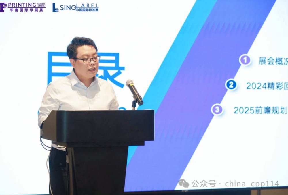 在華南印刷展標簽展推介會上,中貿展項目營銷部經理黃煒堅先生向與會嘉賓詳細介紹了華南印刷展標簽展的最新籌備情況。他表示,2025華南國際印刷展標簽展,將全面貫穿印包產業鏈及終端應用。隨后他分別從展會概況、精彩回顧、前瞻規劃三個方面進行了闡述。