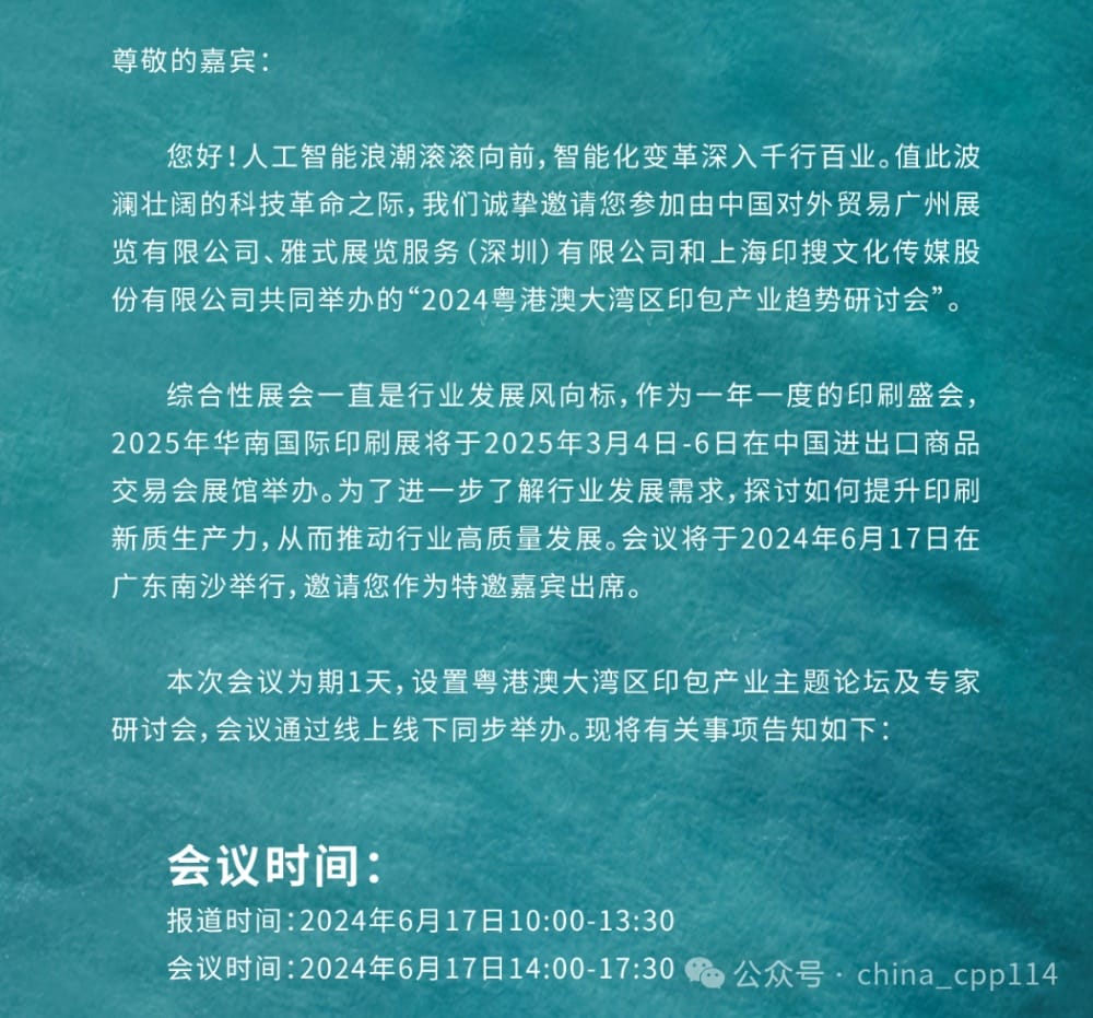 活動預告|粵港澳大灣區印包產業趨勢研討會即將在南沙舉辦