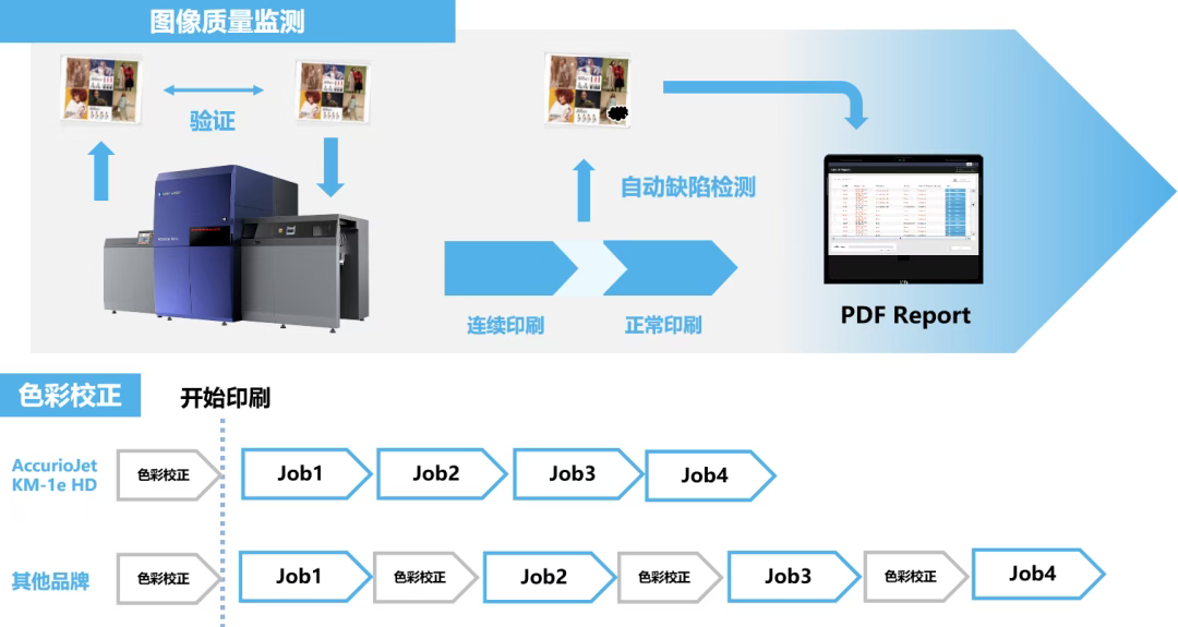 AccurioJet KM-1e HD無需進(jìn)行頻繁色彩校正,并支持自動(dòng)監(jiān)測(cè)印刷缺陷,不僅可節(jié)省色彩校正所浪費(fèi)的時(shí)間,還可避免人工檢測(cè)帶來的誤差和材料浪費(fèi),由此能大幅降低作技能門檻,作人員即使沒有專業(yè)背景也能輕松上手,可大幅減少培訓(xùn)時(shí)間與成本。